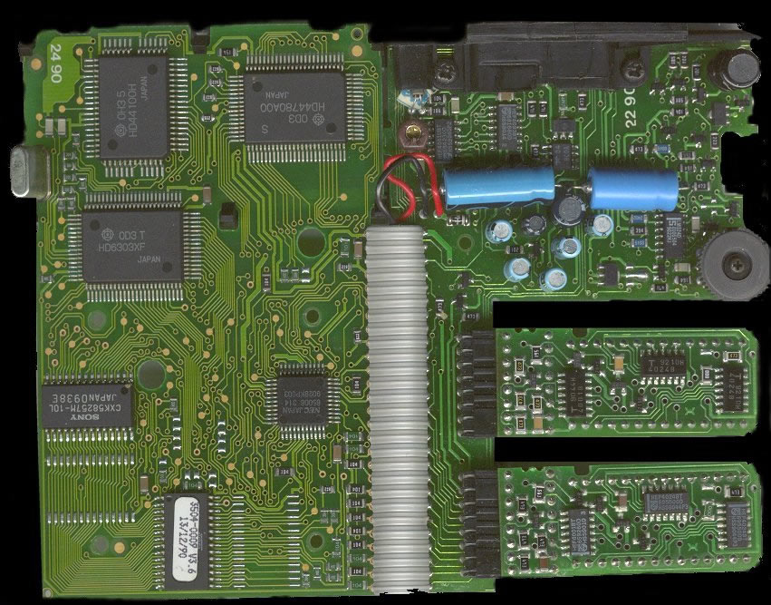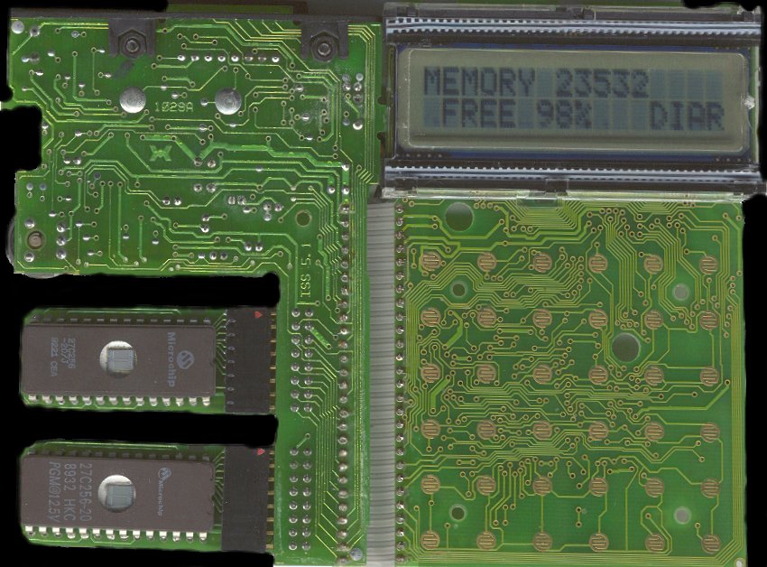 with two-line LCD, two slots for memory cartridges and a connector